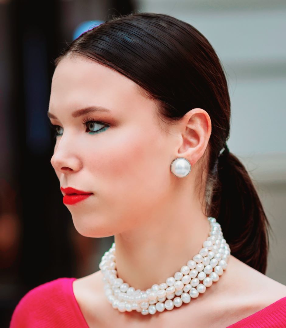 White pearl studs Gouden oorstekers met witte zuidzee parels.